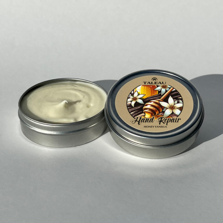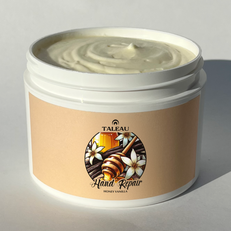 Introducing our Taleau Honey Vanilla Hand Repair, a dedicated formula designed to restore, protect, and comfort the most worn and weathered hands. This specially crafted balm addresses the unique challenges your hands face daily, from the harshness of the elements to the rigorous demands of work and home.